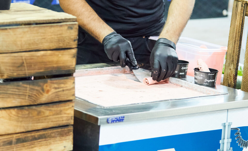 Enhance your stand with a frozen yogurt bar. The professionals on site will prepare the frozen yogurt cups.